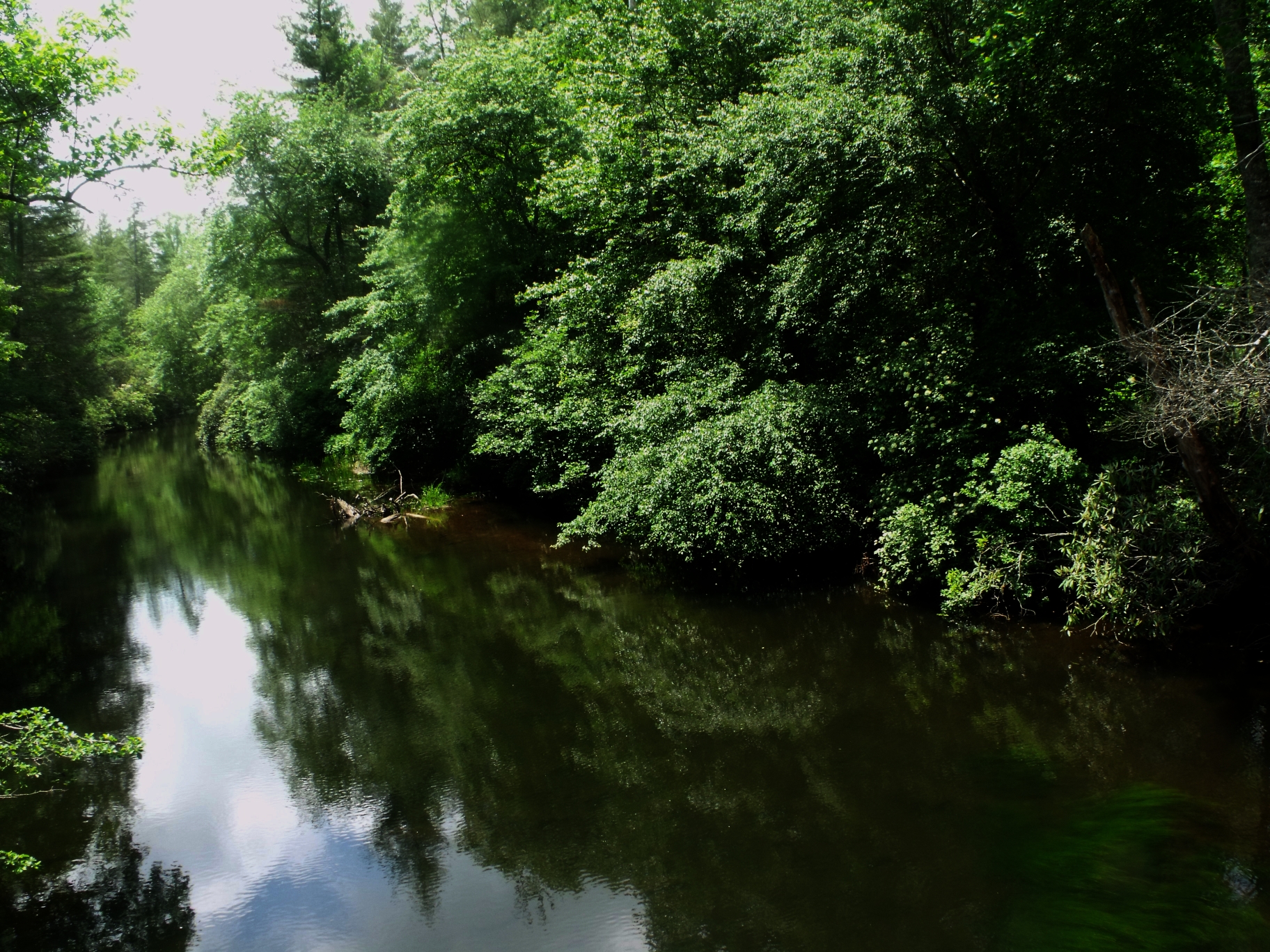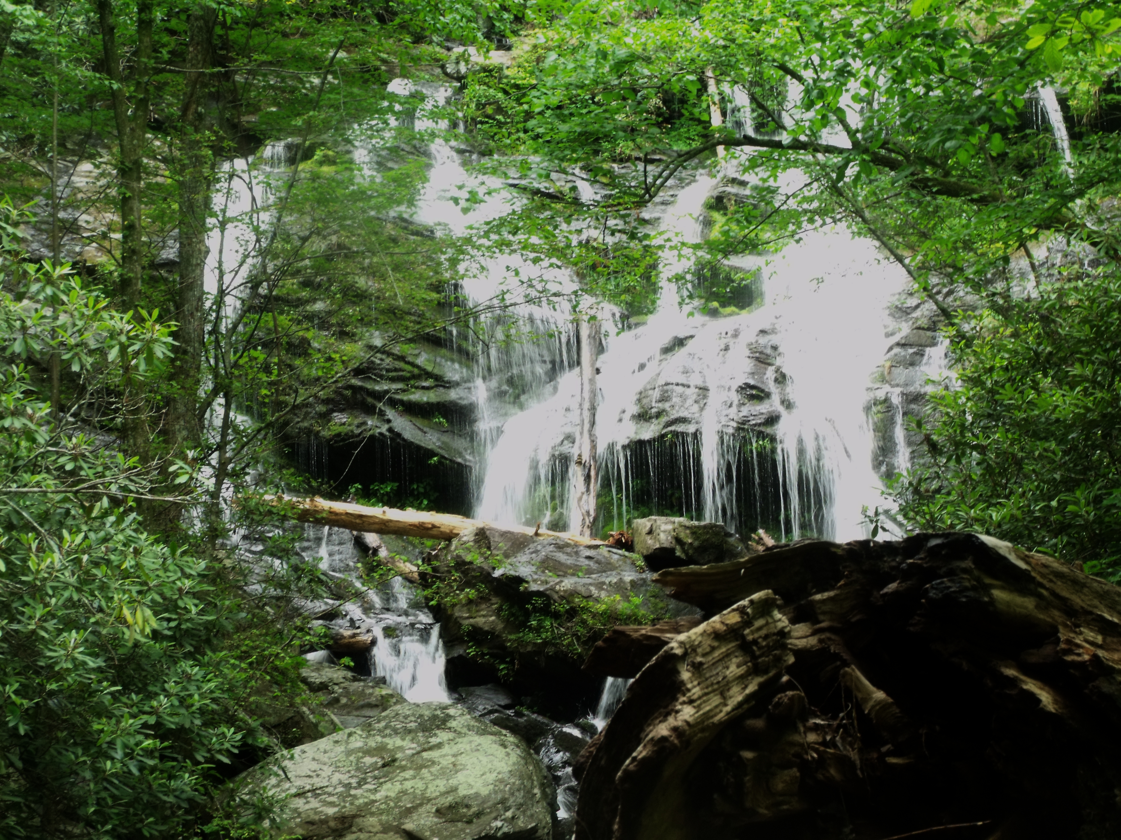 I drive southwest of Asheville into one of the state forests for another hike around this nation of waterfalls. Somehow I lose my sunglasses on this hike. The mosquitoes are more aggressive here too. Of all the falls called “bridal veil” falls, there is one on this hike where I could have walked up the face to the top if I desired. The water was that low on this particular fall.